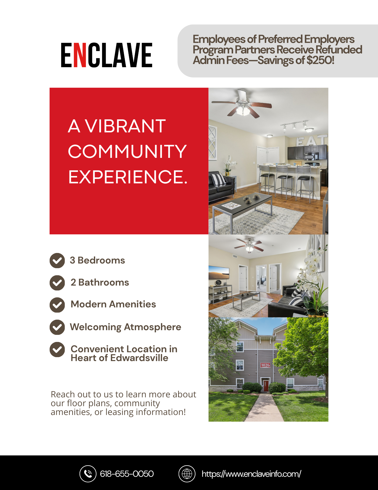 Click through the informational gallery below to learn more about the variety of apartment communities and rental options available to employees through the Preferred Employer Program!